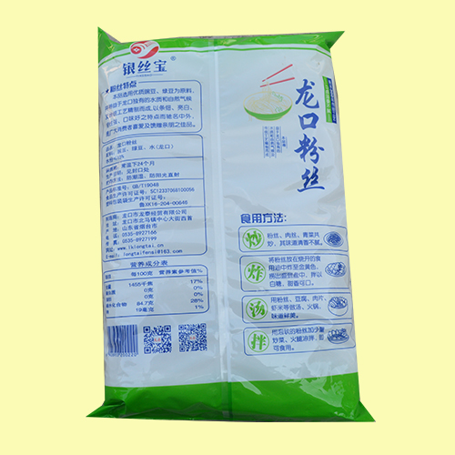 龙口细粉丝采用豌豆、绿豆、水为原料。从投料——成型——冷冻——烘干全自动控制设备,全流程均采用纯净水,封闭式无菌化生产,早就起不平凡的品质。适用于餐饮花甲粉,海鲜烤粉丝、麻辣烫、凉拌粉丝等多种用途,不仅经济实惠更是您健康饮食的佳品。